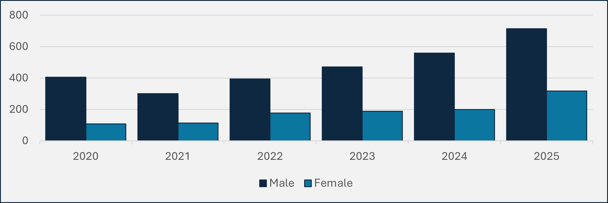 And it isn’t just the male demographic that gambling related financial harms are impacting – women now represent 28% of all disclosures, and an increase of 196% in 2025 compared to 2020 – almost 3 times as many.