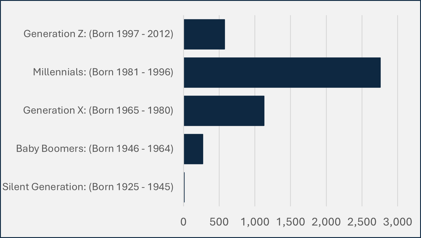 Millennials account for 58% of all data, followed by generation X at 24%, and generation Z at 12 %.